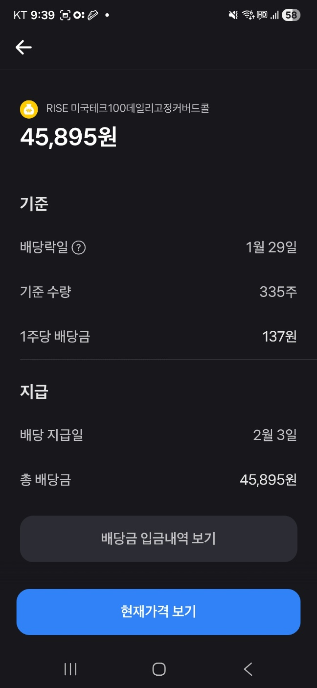 세후로 총 45,895원 분배금 입금!